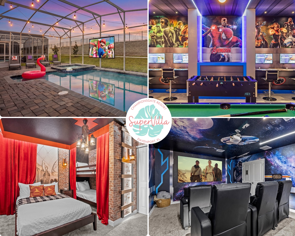A vacation home that takes your entertainment seriously! That’s our 8-bedroom villa in Emerald Island Resort at 3 miles from Disney… Ready to enjoy themed bedrooms, a premium private movie theater with a 155-inch screen, 4K projector, 5.1 surround sound, and a PS5 for gaming? Relive your favorite films in stunning quality, just like in the best movie theaters. Private Pool and Spa will make your vacation unforgettable! We’re ready for families and groups, to offer fun, comfort, and luxury.