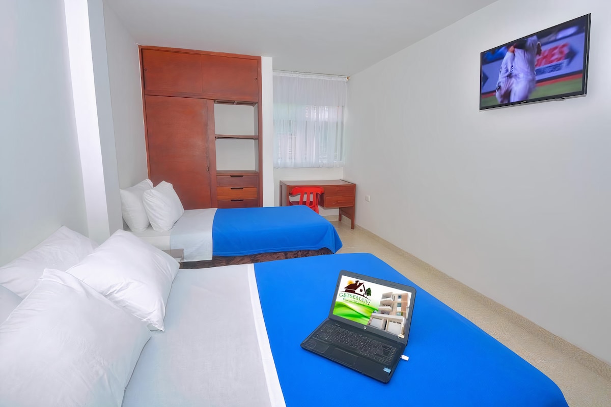 Habitación con 2 Camas Dobles Cómoda y Acogedora!