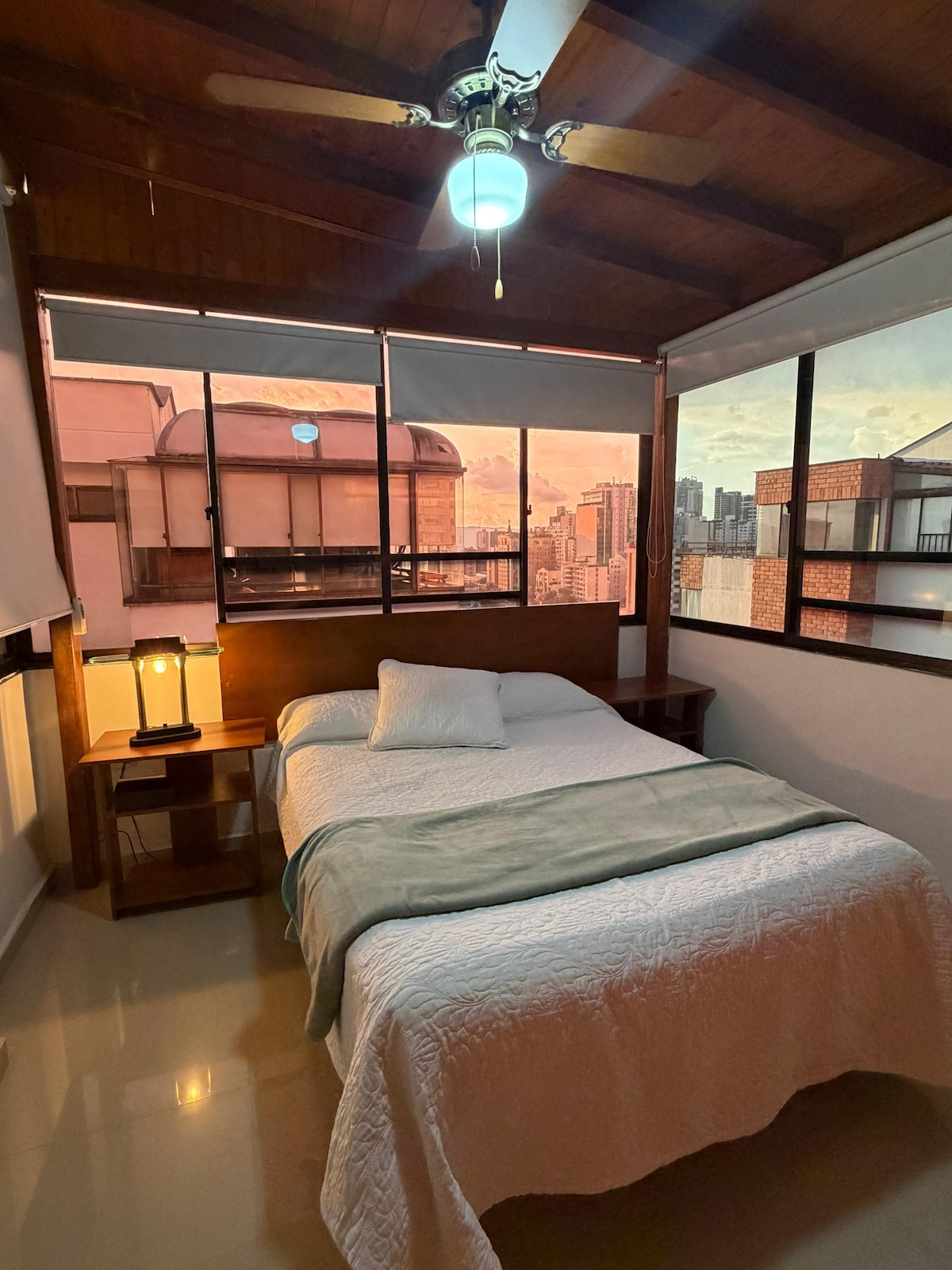 Beautiful brand new apartment. 10th floor with amazing sunset view. Central location. Residential and safe area next to the Cacique Mall and Neomundo Convention Center, easy access to Carrera 33,Cabecera,Girón and Floridablanca. 2 bedrooms, 2 balconies, hammock, 2 bathrooms, 2 beds, an auxiliary bed and a sofa bed. Excellent lighting and ventilation, 300mbps WIFI, 2 TVs with access to DirecTvGO, Netflix, Amazon and HBO. Ground floor of the complex with minimarket, bakery, pharmacy, among others.