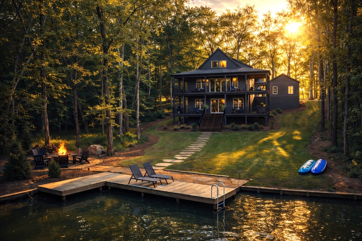 *License # STR2026-066 4 bedroom 3 and 1/2 bath Lake Oconee home with private dock and direct water access. King bedrooms on the main and upper levels plus a basement bunk room provide flexible sleeping. Kayaks paddle boards and life jackets are provided for lake use. The lower level includes a game room with pool table and arcade game. Flat lawn leads to the water with a fire pit and stacked fire wood near the shoreline. Minutes from a public boat ramp with easy access to big water.