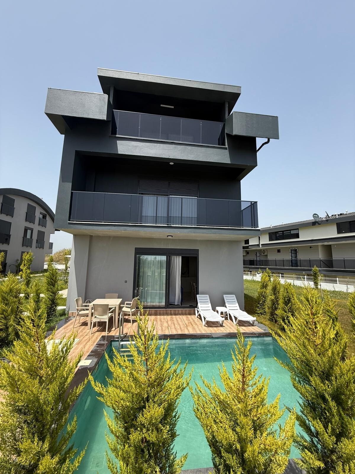 🌿 Hayalinizdeki Tatil Villası Sizi Bekliyor! 🌿 Bu harika villada, tüm ailenizle birlikte keyifli ve unutulmaz bir tatil geçirebilirsiniz. Deniz manzarasına sahip, havuzlu ve 3 katlı lüks villamızda: 🏡 3 banyo ve tuvalet 🍽 2 mutfak 🛏 8 kişilik konaklama kapasitesi 📺 2 adet televizyon 🧺 Çamaşır ve bulaşık makinesi bulunmaktadır. 🌊 Denize sadece 900 metre yürüme mesafesindedir. 🚗 Araç park yeri mevcuttur. 📌 Evimiz, Türkiye Cumhuriyeti Kültür ve Turizm Bakanlığı’na kayıtlıdır