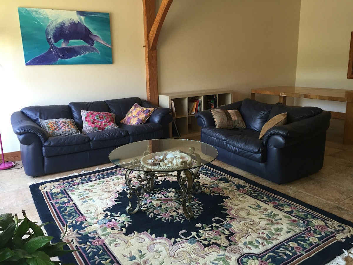 Light-filled spacious apartment in serene natural setting - separate entrances, three french doors, kitchen, full bath, dining area, living room, wireless internet, spilling out onto 35 acres of riverfront and wooded trails to play, swim, kayak, relax hot tub, and more!
