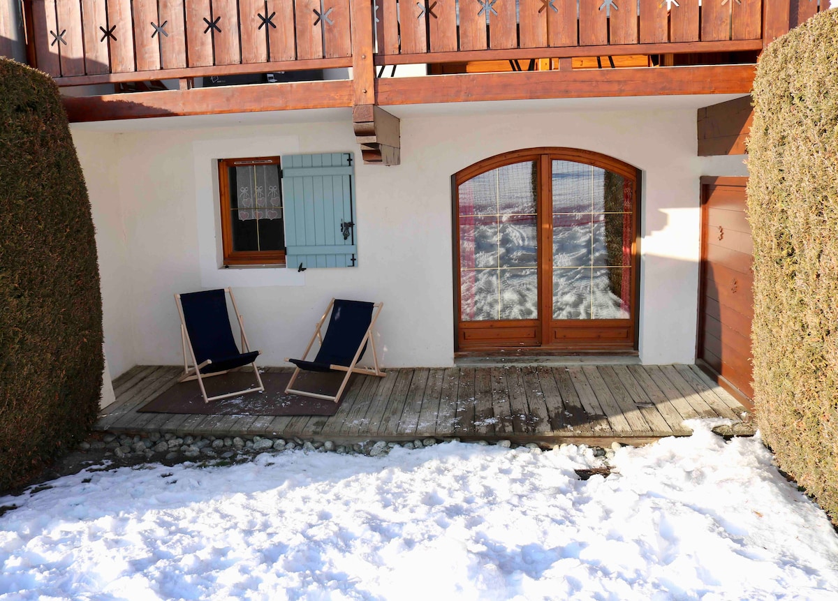 A 4 km de Megève a Praz sur Arly loue Studio( 1 pièce) tout équipé studio classé en 2 étoiles . ATTENTION LE JACUZZI N' EST PAS INCLUS DANS LE PRIX DE LA LOCATION. Exposition sud rez de jardin avec accès direct sur l’extérieure ... TV, internet Pour toute réservation -3 nuits minimum nous vous offrons 1/2 heure pour 2 pers au jacuzzi -1 semaine , nous vous offrons 1h heure pour 2 pers au jacuzzI Parking privé Studio proche des commerces. NOUVEAU lac de baignade à 5mn en voiture.