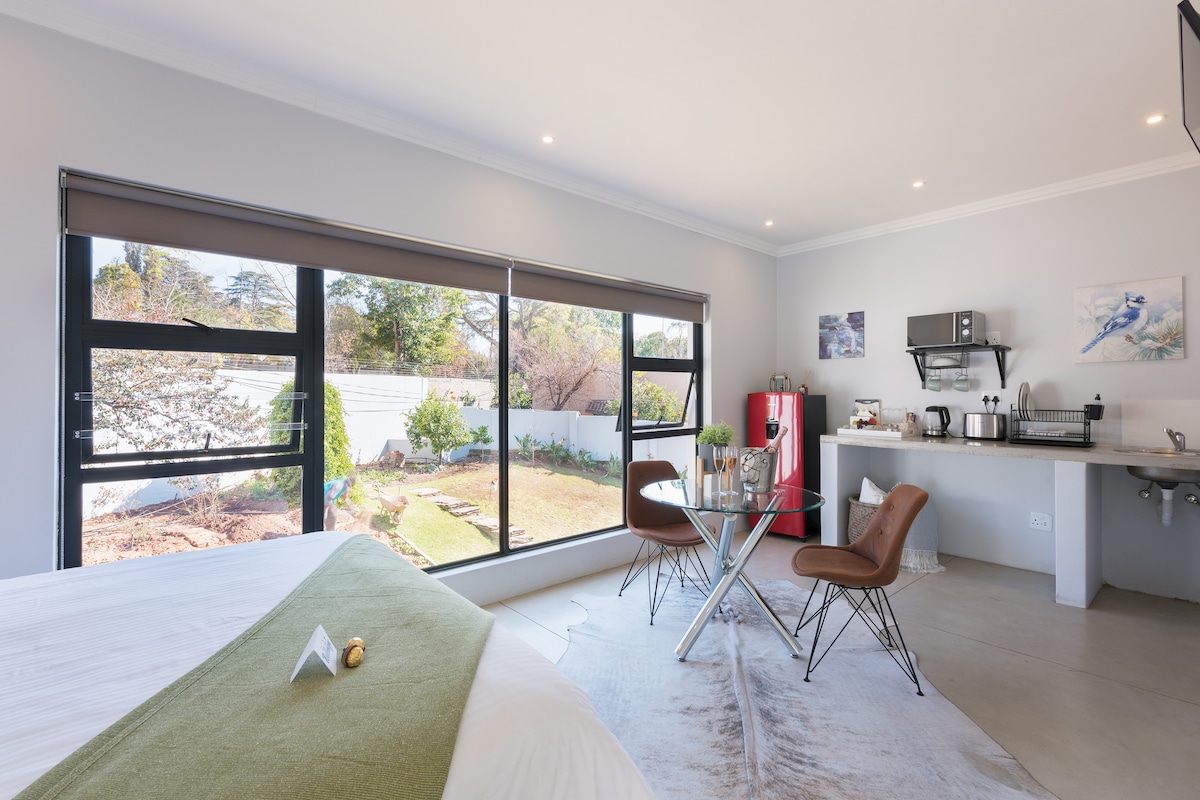 Modern, quiet, private and stylish open-plan studio in beautiful garden setting in Greenside. Tranquil with comforts for the traveller & working professional. Relax or work in the private garden courtyard under the olive trees. Lemon Tree has fast WiFi & work space. Close to Parkview & 4th Ave Parkhurst for excellent restuarants, coffee shops & food stores. Great location close to universities, Milpark & Jhb Surgical Hospitals, Rosebank, Gautrain Station & Sandton .