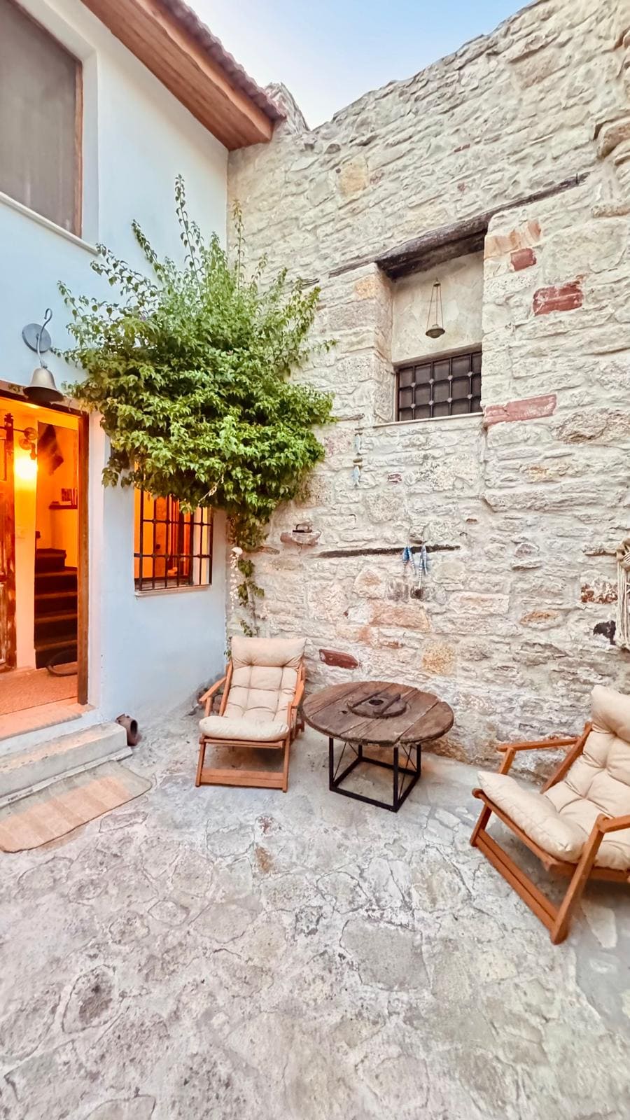 Willkommen in Eski Foça- das kleine Steinhaus liegt mitten in der Altstadt am kleinen Hafen und besticht durch die zentrale Lage zum Meer (150m), Cafés... Das Steinhaus (Baujahr 1877) wurde mit viel Liebe zum Detail geplant und restauriert. Ein Doppelbett (160cm), TV, Klimaanlage mit Virenfilter und ein eigenes Badezimmer runden das Zimmer ab. Ebenfalls können wir euch Bootsausflüge, Flughafenstransfer gegen Aufpreis anbieten. Bitte beachtet das der Garten gemeinsam mit mir genutzt wird.