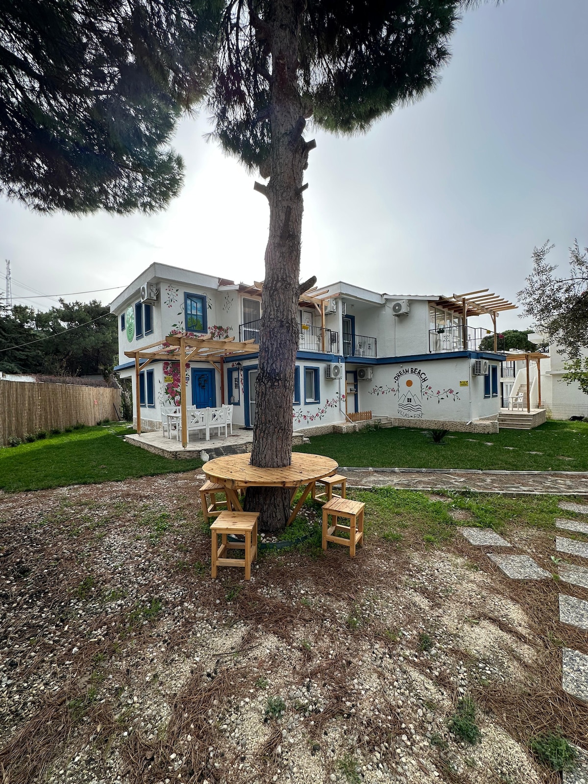 🌊 Spacious phokaian house with a sea view Evimiz denize sifir güvenli ve sessiz bir sitede konumlanmaktadir. Carsi merkezine keyifli bir yuruyusle 10 dakika, 800 metredir. Evin tam karsisindaki sahil yüzmek icin focanin en ideal sahilidir, kayaliksiz, kum tabanlidir. Voodoo plaji 1 km mesafededir. Migros supermarket evin hemen yaninda konumlanir. Mutfak tam donanimli olup kapsul kahve makinesi, turk kahve makinesi, cay makinesi kullaniminiza sunulmustur. Mulkte 2 adet klima bulunmaktadir.