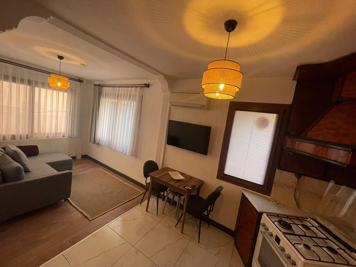Willkommen in Eski Foça- das kleine Steinhaus liegt mitten in der Altstadt am kleinen Hafen und besticht durch die zentrale Lage zum Meer (150m), Cafés... Das Steinhaus (Baujahr 1877) wurde mit viel Liebe zum Detail geplant und restauriert. Ein Doppelbett (160cm), TV, Klimaanlage mit Virenfilter und ein eigenes Badezimmer runden das Zimmer ab. Ebenfalls können wir euch Bootsausflüge, Flughafenstransfer gegen Aufpreis anbieten. Bitte beachtet das der Garten gemeinsam mit mir genutzt wird.