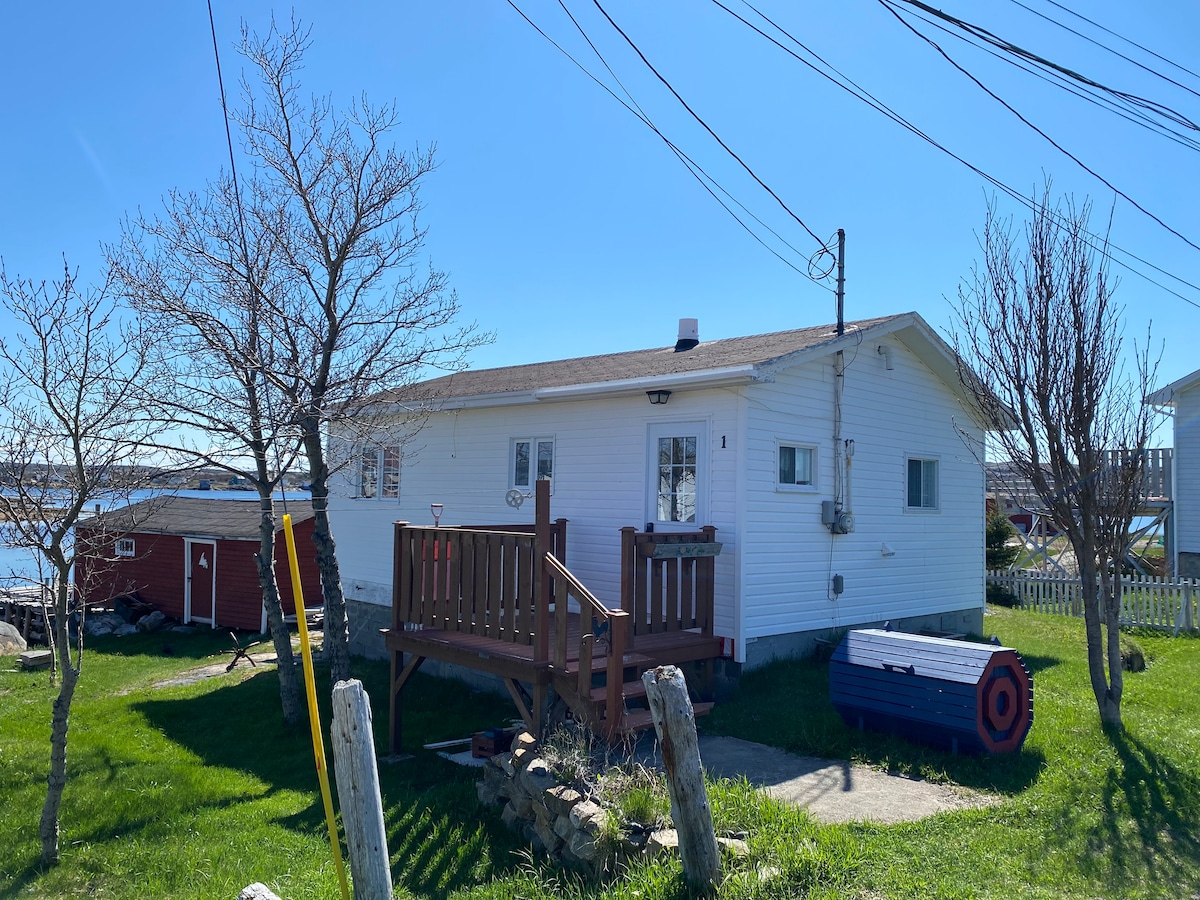 *7 + nights are 15% off If you desire a tranquil, peaceful getaway then escape to our charming, cozy cottage in a secluded setting. We are 25 mins from Twillingate (Rockcut hiking trails & icebergs in season. Relax in our private Hot Tub on a fully enclosed deck while listening to some tunes on the Outdoor Smart TV. Enjoy the cottage side fire pit or take in a breathtaking sunset, just steps away with our Fire pit & seating right at the waters edge. Firewood, roasting sticks provided.