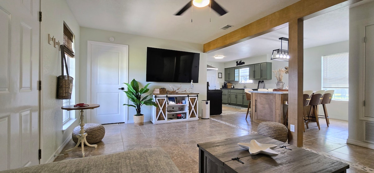 Stay at this riverfront 2 bedroom 2 bath retreat in Foley, just minutes from Gulf Shores beaches. Enjoy a screened patio with water views, fully equipped kitchen, spacious living area, and easy access to kayaking right from the property. Relax by the outdoor firepit after a day at the beach, fishing, or exploring the coast. A great choice for families and small groups seeking a peaceful waterfront getaway.