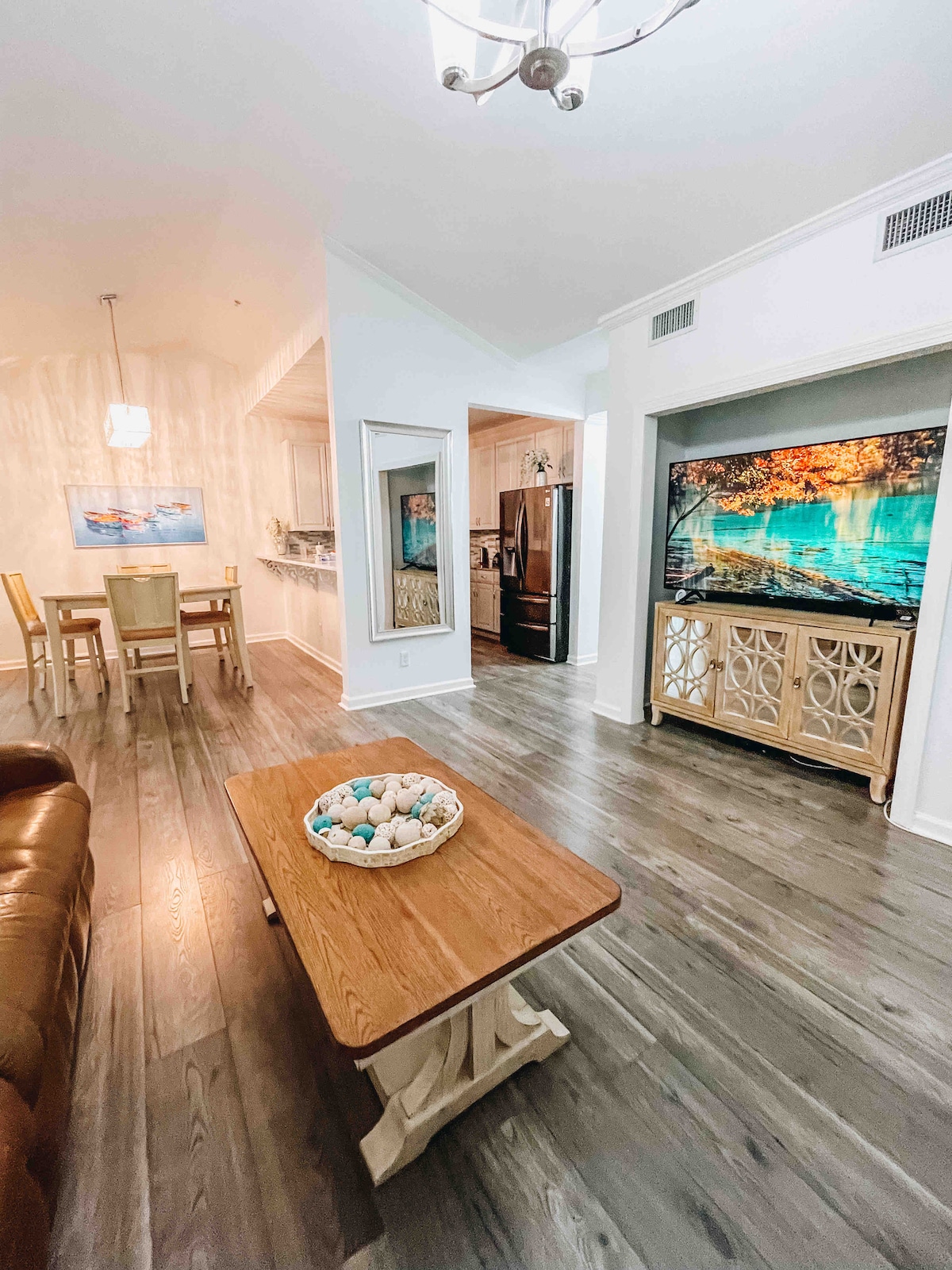 Your group will enjoy this spacious 2nd floor unit with full kitchen and washer/dryer. It also has a balcony with pool view. This is an older unit that is not as updated as some of the others, but great for work crews or families on a budget. 3 bedrooms and two full bathrooms. We provide starter essentials. There are smart tvs and ceiling fans in every room. OWA and Tropic Falls are just across the street. Foley has many great restaurants and it is just 8 miles to the beaches!