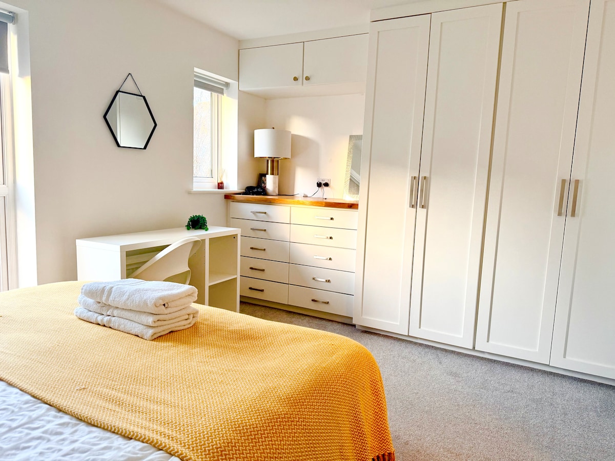 A lovely light and airy, very comfortable house with plenty of space.Very family friendly.Within a short walk of Hythe town and the beach. Ideally placed to explore beautiful Kent.Canterbury 25 mins. Channel tunnel 8 mins. Port of Dover 22 mins. Perfect for a longer stay! Large kitchen with full size fridge and dishwasher. Washing machine & tumble dryer. 2 large double bedrooms. Dressing room with ensuite bathroom with rainfall shower to master bedroom South facing private garden to rear.