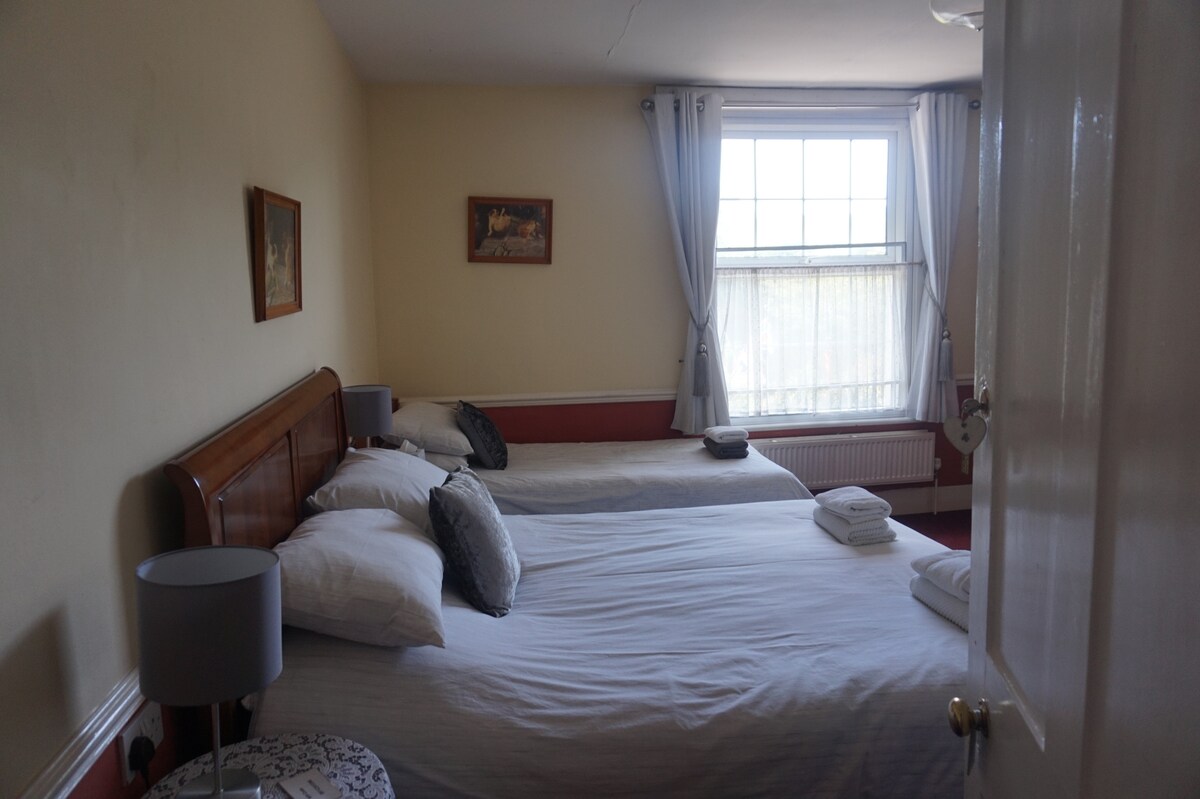 A 1 bedroom spacious room couch and living area luxury bed and linen, partial sea view from a bay window, has separate entrance with courtyard garden, set in the historical high street this early eighteen century building is full of charm and history, although above a quaint public house ambient noise can only be heard when the pub is open then it's peaceful, the entrance is completely separate to pub when pubs closed . Shared bathroom with one other room Please don’t book if noise is an issue
