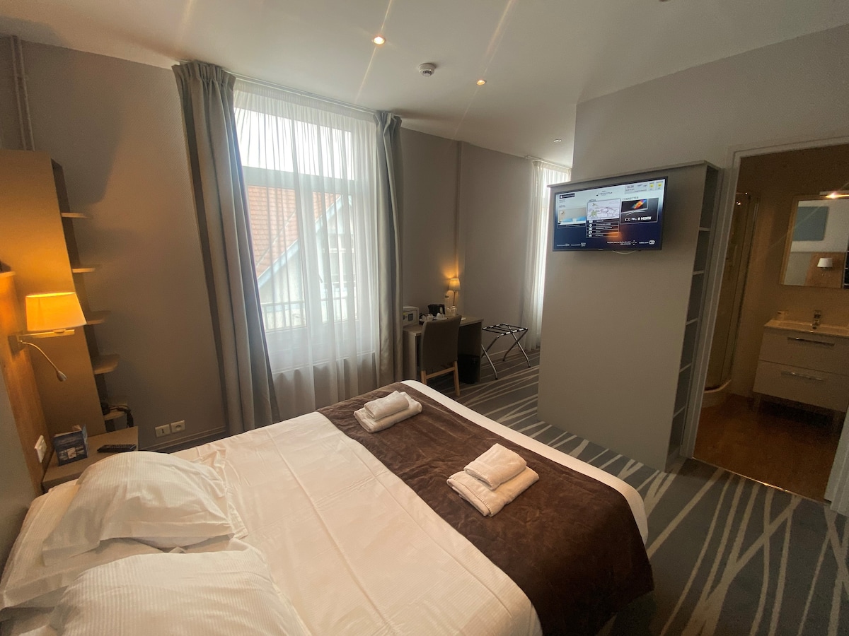 位于市中心的可爱套房,配备加大双人床和空调