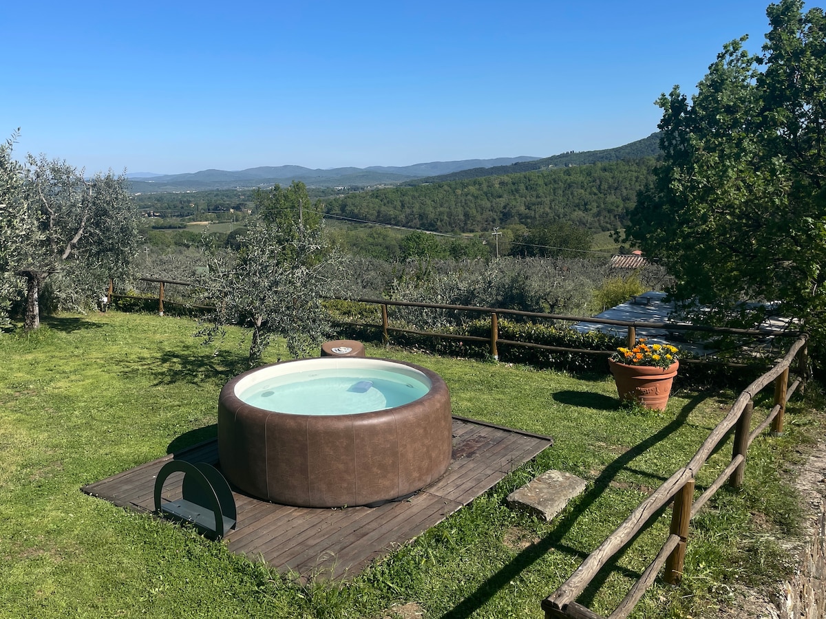 Experience the magic of the Tuscan countryside in this beautiful double room with private bathroom. Furnished in typical Tuscan style, equipped with air conditioning and Wifi is the ideal place to spend your holidays. The magnificent panoramic pool in the garden is at your disposal as the rest of the outdoor relaxation areas. Enjoy the special atmosphere of our shared lounge and savour the taste of Tuscan cuisine with our breakfast included. Come to discover Tuscany!