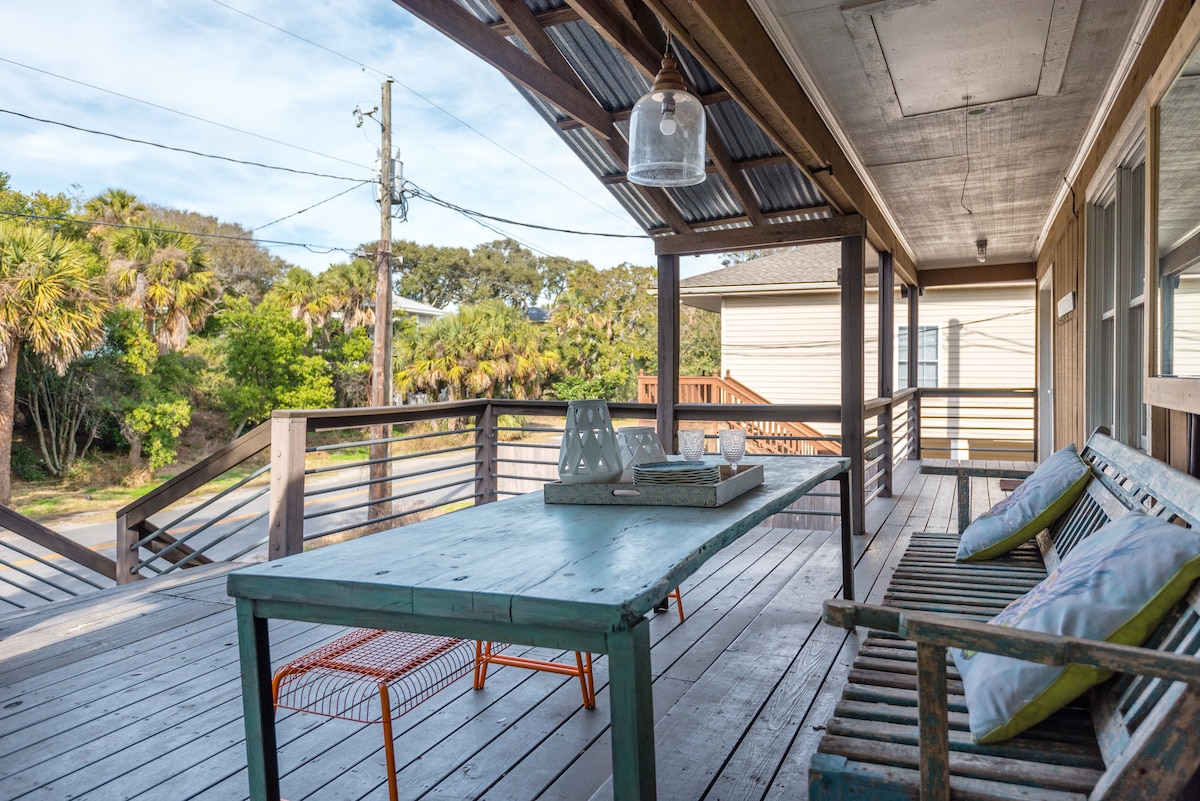 Welcome to your Folly paradise! This rustic 1940's beach bungalow was updated with modern appliances, brand new luxury bathroom, art, surfboards, 60" 4K smart TV ready for your subscriptions, stereo with bluetooth, and a huge outdoor shower. Guests love the privacy of having a secluded, full-sized property with great outdoor spaces, parking, and a short walk to the beach, bars and restaurants- for the same rate as a noisy condo. A retreat for guests that want a true old school folly vibe.
