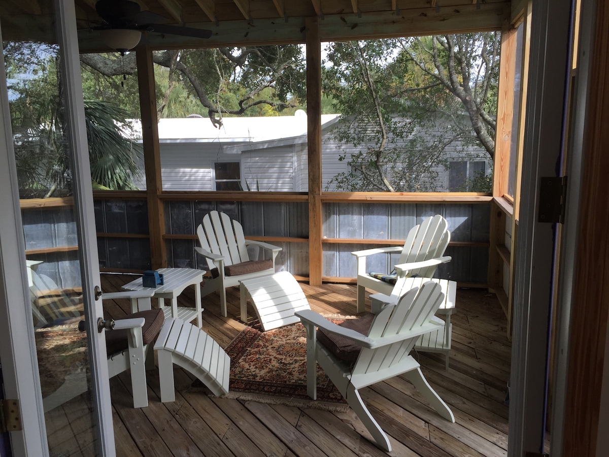 Welcome to this beachy home away from home. This home is nestled right in the middle of Folly Beach . This 1100sf apartment is the perfect getaway for two! Walk to the beach in two minutes and downtown in 5. Enjoy the screened in porch, patio, outdoor shower, piano, book swap and more! Fully furnished kitchen so you can cook some local seafood. Come and relax on Folly! Mike and Rachel