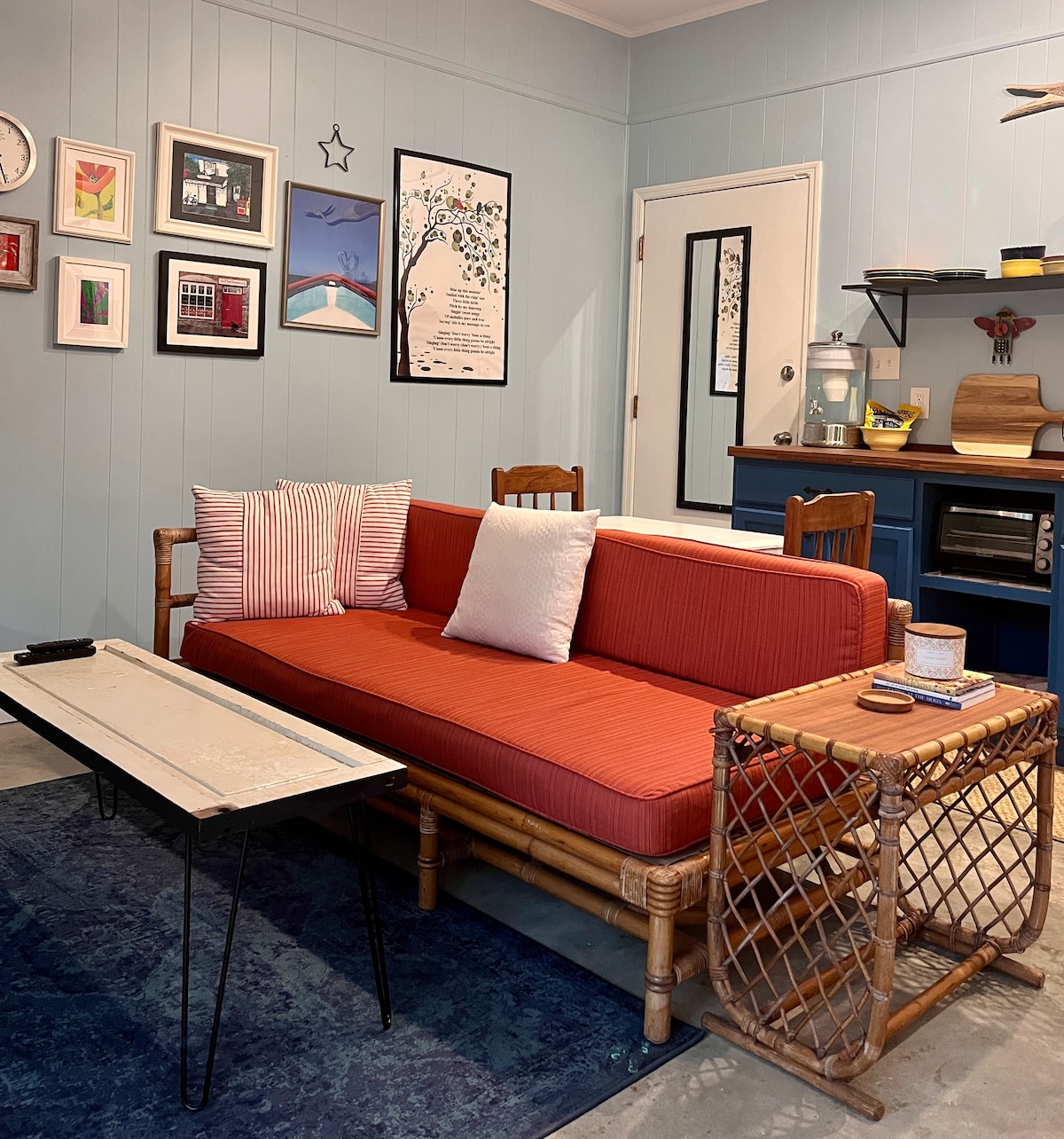 The James is a unique NEW 530 sq ft retro coastal tiny home located in a gorgeous neighborhood on James Island ◡̈ 10 mins to downtown Charleston 12 minutes to Folly Beach Walking distance to restaurants The James sleeps up to 6 people and 2 dogs (NO PET FEE) & boasts a private fenced yard & patio with an outdoor shower and Clawfoot tub! The James is ideal for solo travelers, couples, families, those traveling w/ their dog(s), those w/ limited mobility and groups of friends. #BNB-2023-02