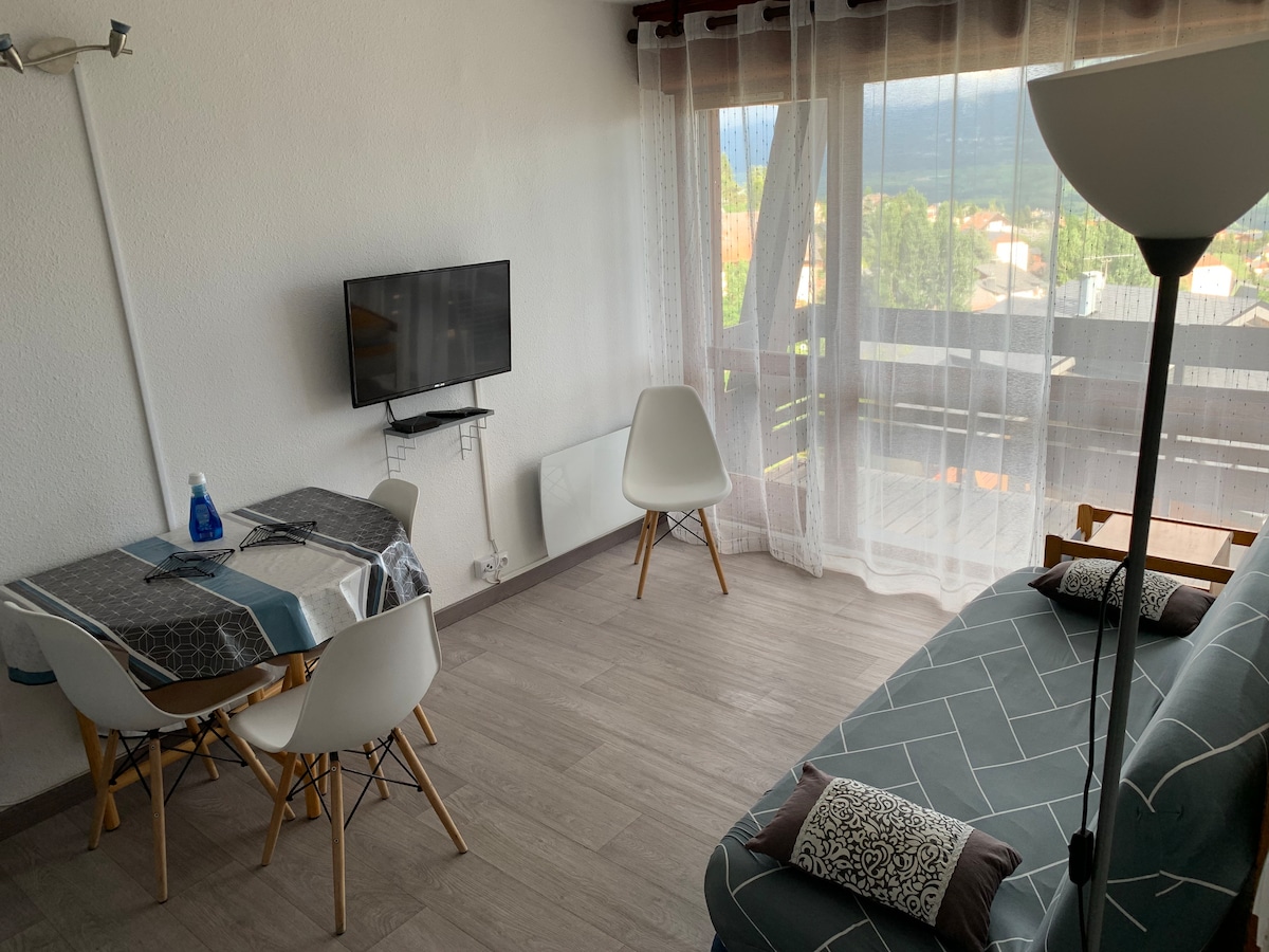 Agréable studio 25 m², 2ème étage sans ascenseur, balcon, entièrement rénové, plein sud, splendide vue sur les montagnes. Parking au pied de la résidence. Cuisine:frigo congélateur, lave vaisselle, micro onde, plaque induction. Coin nuit:lit 140x190 matelas mi-ferme sommier lattes et rangements. fourni: 1 couverture polaire 2 couettes 200, 300gr 2 oreillers Non fourni :draps torchons serviettes de bain. Canapé fixe sans couchage. Douche receveur 140x80. Petit wc. Maximum 2 personnes. Wifi