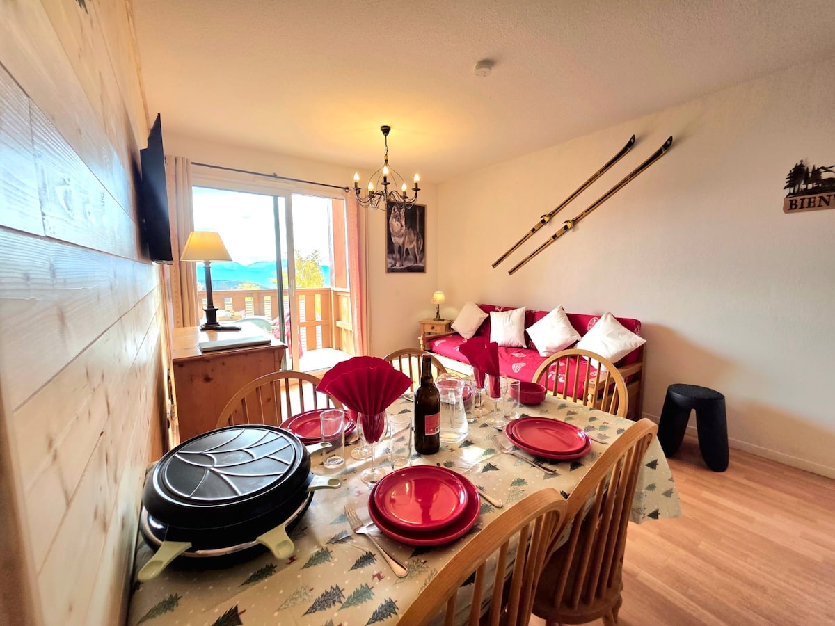 Appartement 70 m2 pour 6 personnes, très bien équipé, cuisine rénovée, lave-vaisselle, grand frigo congélateur, lave-linge, TV, WI-FI, sèche-cheveux, chaise haute, lit BB, couettes, oreillers, alèses, literie neuve produits base fournis. Situé à 6 mn à pied du centre et télécabines. Grande terrasse ensoleillée, vue la foret, sans vis à vis. Grande pièce de vie lumineuse, salle de bain avec baignoire, wc séparé. Deux chambres vue sur terrasse Résidence calme, ascenseur, place de parking privée.