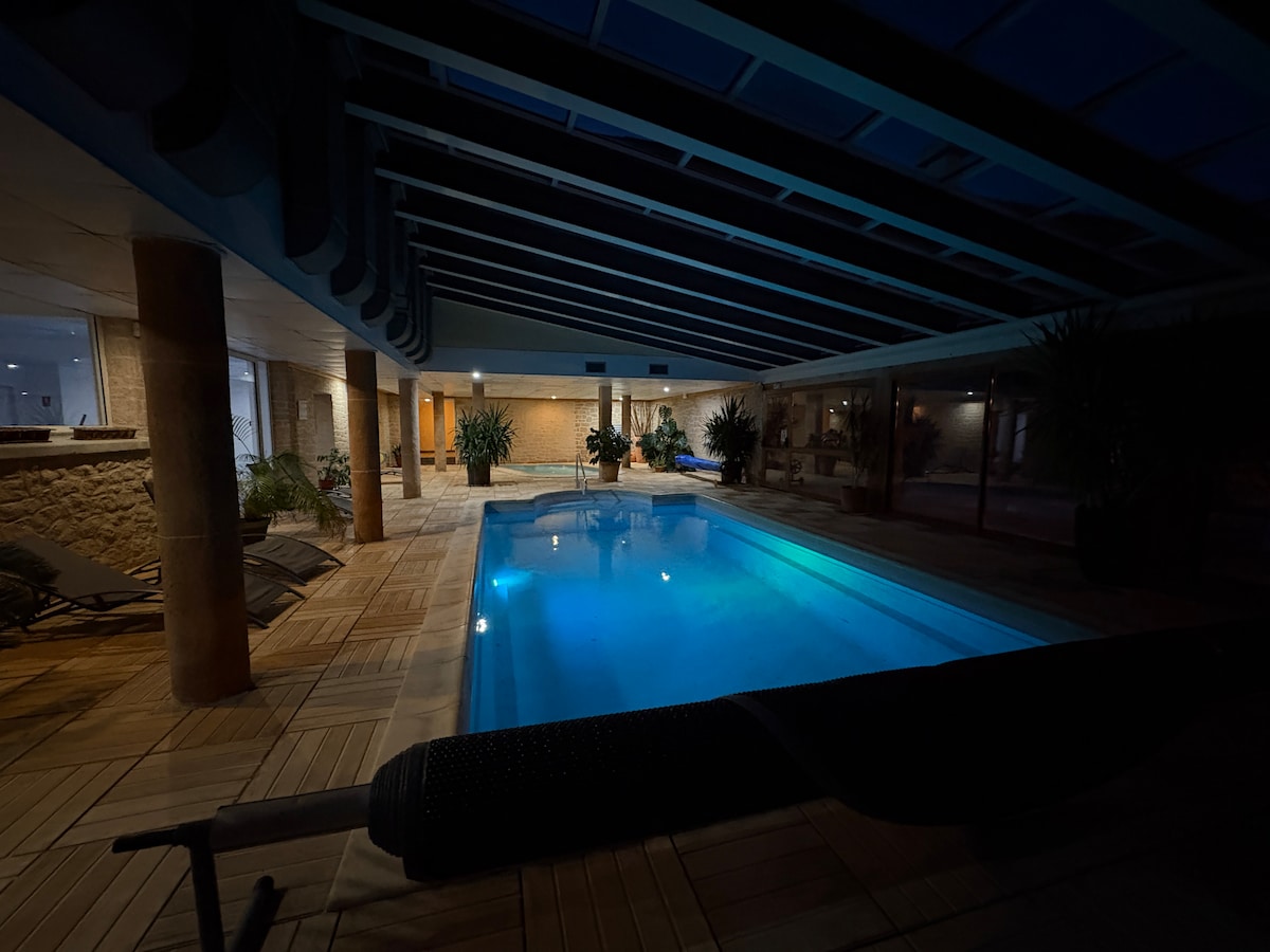 Bienvenue au Paradis Perdu à Fontpédrouse, un grand chalet haut de gamme avec piscine intérieure chauffée. Idéal pour un séjour détente en pleine nature, avec vue panoramique, baby-foot, fléchettes, jeux de société, poker et terrain de pétanque ! Agréable poêle à bois à disposition tout au long de l'année Parfait pour 9 personnes, à seulement 20 min à pied des bains de Saint-Thomas et situé près de superbes randonnées. Draps et serviettes disponibles en option.