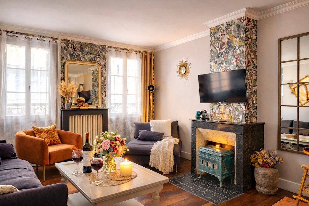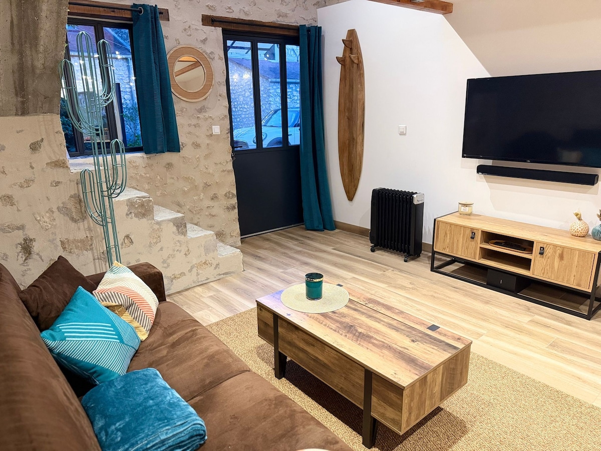 Charmante maisonnette entièrement rénovée de 30m2 avec son agréable petit jardin privatif, au calme de la rue, nichée dans le grand jardin d'une belle et ancienne copropriété verdoillante en plein cœur de ville d'Etampes, coup de cœur assuré : grande pièce à vivre avec cuisine ouverte neuve et parfaitement équipée ! Pierres & poutres apparentes, équipements et environnement hauts de gamme, tout confort avec lit queen-size neuf et escamotable : le salon se transforme en grande chambre !