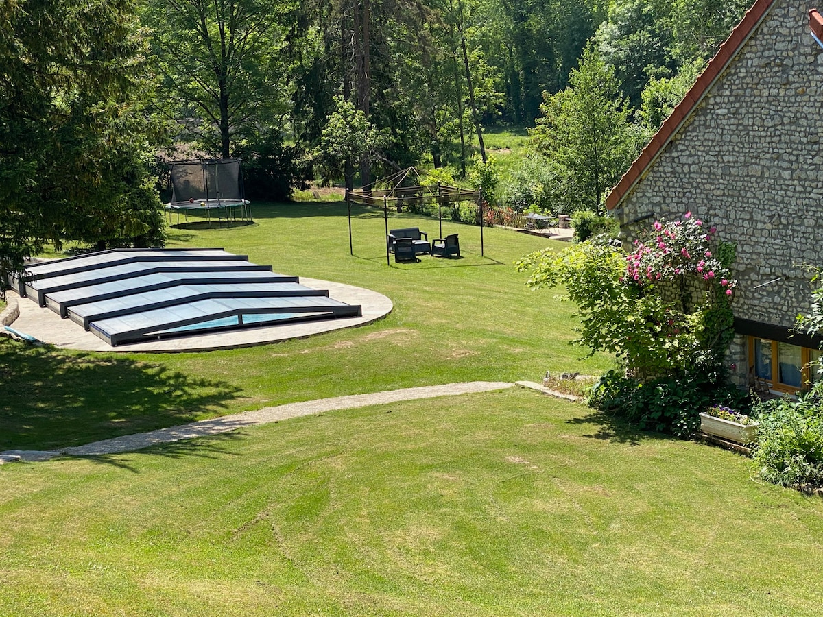 Guest House entièrement mise à disposition, située en annexe de notre maison principale. Nous nous ferons un plaisir de partager avec vous notre jardin, en plus d'une terrasse privative. A seulement 1 heure de Paris, notre belle chaumière vous permettra de profiter d'un environnement paisible à la campagne. Vous pourrez profiter de belles balades en forêt à quelques pas de la maison, et découvrir les nombreux centres équestres et lieux culturels à proximité.