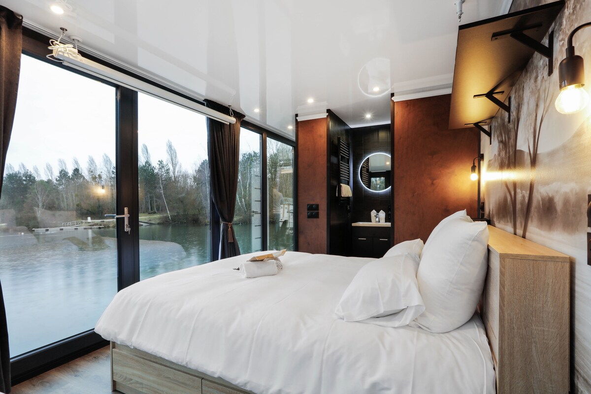 A 28' de Paris, cette House boat panoramique est amarrée dans la Marina de Saint-Fargeau-Ponthierry. L'Escale Royale vous propose une expérience inoubliable, une suite avec vue panoramique juste devant votre lit et un toit zénithal juste au-dessus vous permettant de vous détendre et de passer un bon moment à deux tout en profitant des différentes vues.