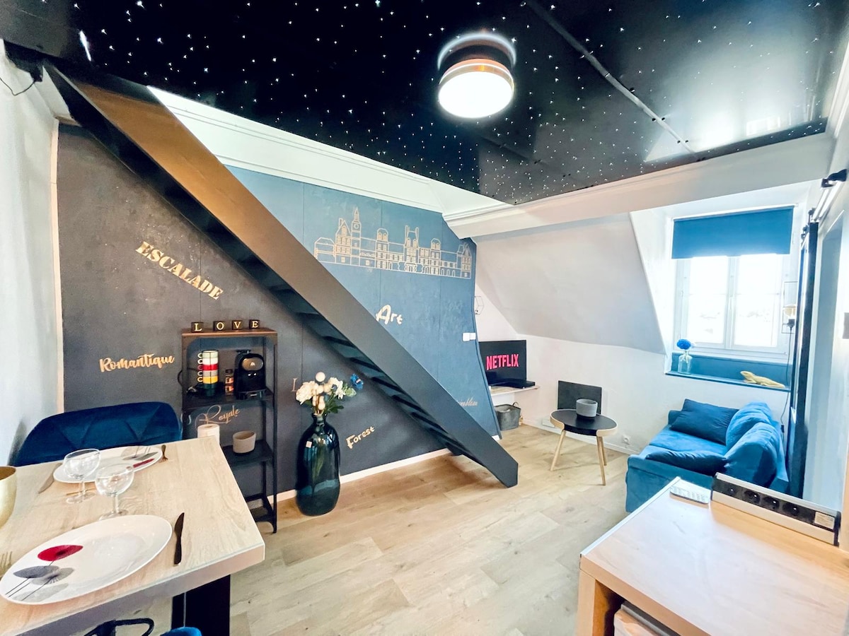 En plein centre de Fontainebleau, nous sommes ravis de vous accueillir dans notre duplex inspiré par le ciel étoilé avec une déco raffinée . Ici, chaque détail rappelle la tranquillité d'une nuit claire sous les étoiles, et vous n'avez qu'à lever la tête pour en profiter pleinement. Avec tout le confort nécessaire pour passer un bon séjour . Profitez de votre séjour parmi les étoiles