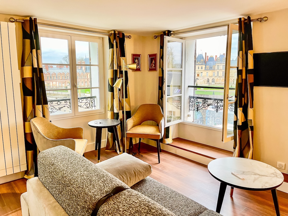 Charmant appartement avec vue imprenable sur le château de Fontainebleau. Il comprend une chambre avec lit double, un canapé-lit confortable, et est entièrement équipé pour un séjour agréable. Le linge de lit et les serviettes sont fournis, ainsi que l'Internet haut débit via Wi-Fi. Idéalement situé, vous êtes à quelques pas des attractions locales. Parfait pour un séjour en famille ou entre amis, alliant confort et praticité dans un cadre exceptionnel.