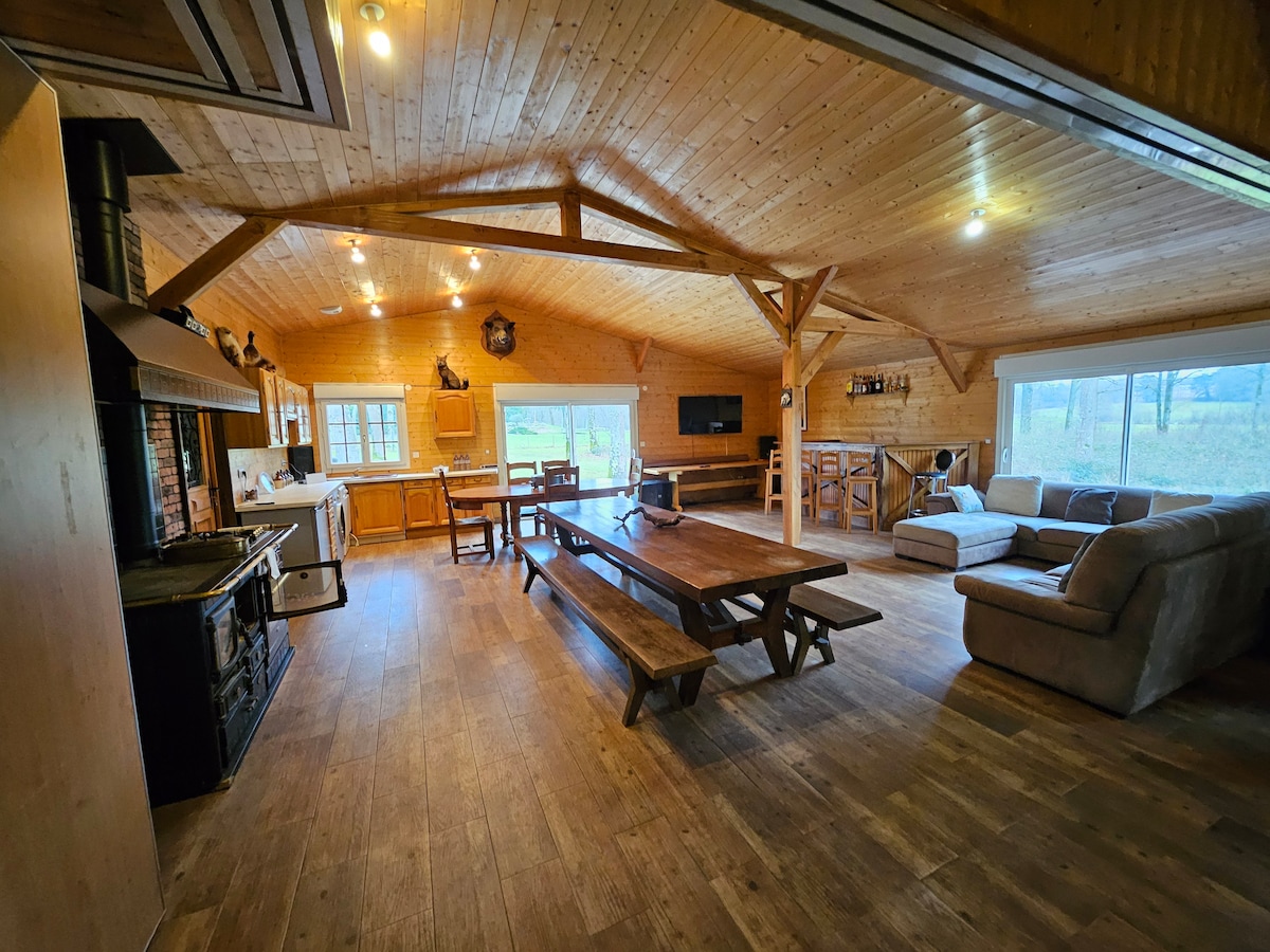 Situé dans une zone résidentielle très calme, le chalet est idéal pour les FAMILLES (2 chambres adultes, 1 chambre 4 enfants ou adultes). NO PARTY AND NO LOUD MUSIC AND RESPECTING OUR NEIGHBOURS PLEASE A environ 1H30 de Paris, vous serez dépaysés et retrouverez de la sérénité! En plus du jacuzzi digne d'un hôtel 5 étoiles, vous pourrez vous balader avec vos enfants autour d'étangs qui viennent donner toute la beauté du domaine privé et sécurisé. Piscine en été et supplément jaccuzi en hiver