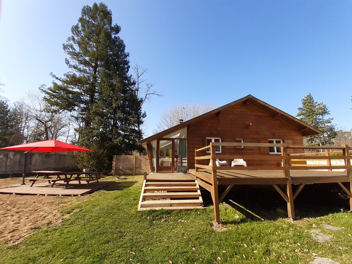 Chalet à la campagne. Profitez de la tranquillité des lieux pour vous détendre dans le jacuzzi et vous ressourcer en pleine nature. Chalet dans un écrins de verdure avec étang. Situer à 20 km de la ville de Moret sur Loing et à 27.9 km de Fontainebleau et de son château. Vous trouverez à 1.7 km de la maison un parc de loisirs et d'accrobranche pour les grands et les petits " jumping Forest". Été comme hiver vous pourrez passez un bon moment en toute tranquillité.