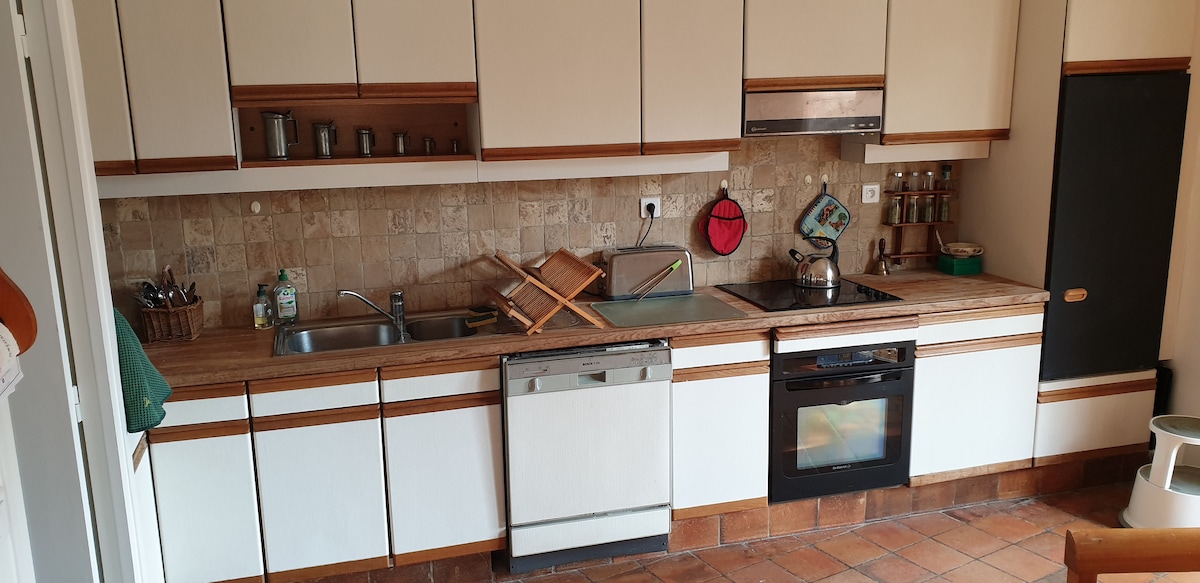 Maison de charme pour grimpeurs, randonneurs et amoureux de la Nature. 5min à pied du centre-ville, 10 min en voiture de la forêt des trois pignons . Cuisine ouverte sur salon avec poêle à bois et ambiance cosy, petit jardin clos de mur pour manger au soleil dans la verdure, pan d'escalade à l'étage. Escalade sur les blocs mythiques de la forêt de Fontainebleau, Randonnée à pieds, vélo, cheval. Barbizon et Fontainebleau= 14Kms. Paris= 70kms.