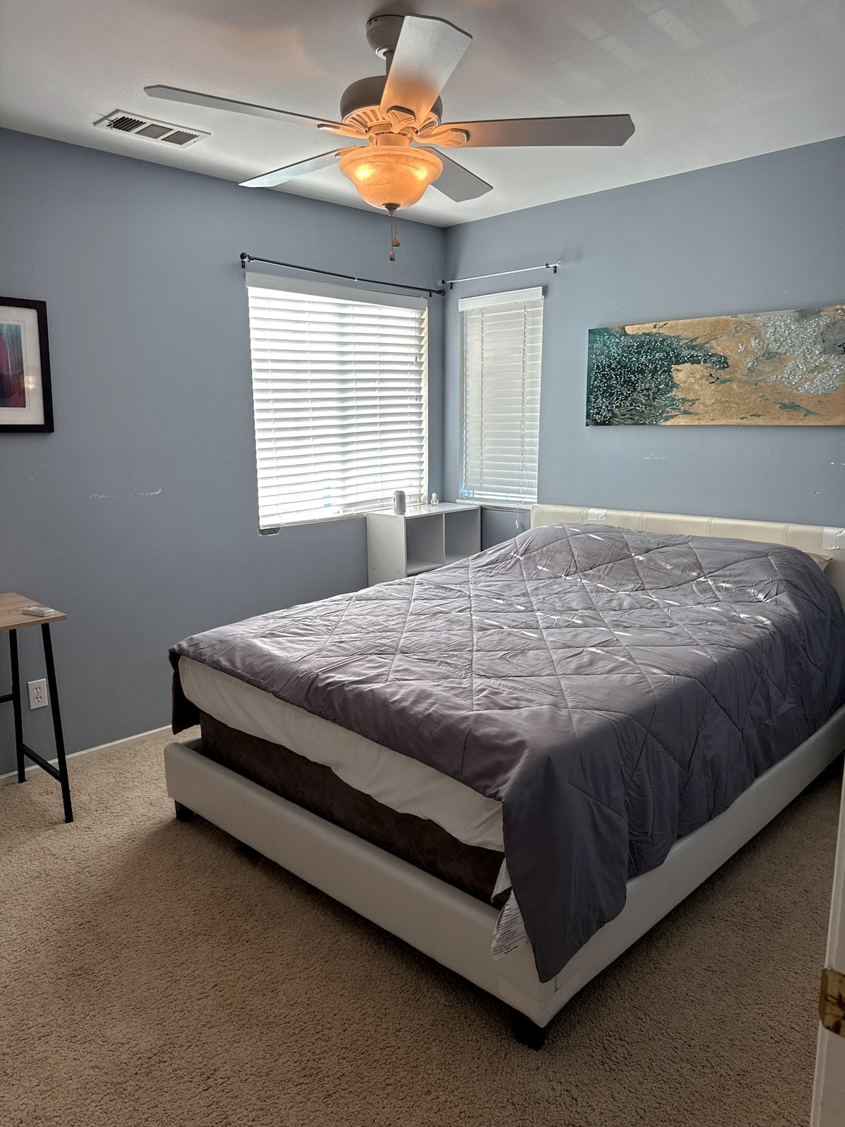 This spacious suite features two queen-size beds—one regular bed and one sofa bed—along with a private bathroom/ entrance and living room. The suite includes a washer and dryer, a 55" TV, and a fully equipped kitchen with a full-size refrigerator, microwave, sink, countertop stove (stored in the cabinets), silverware, and plates. A foldable desk and chairs vailable for dining. I live in the main house with my family and I’m always just a text away if you need anything. We do verify ID.