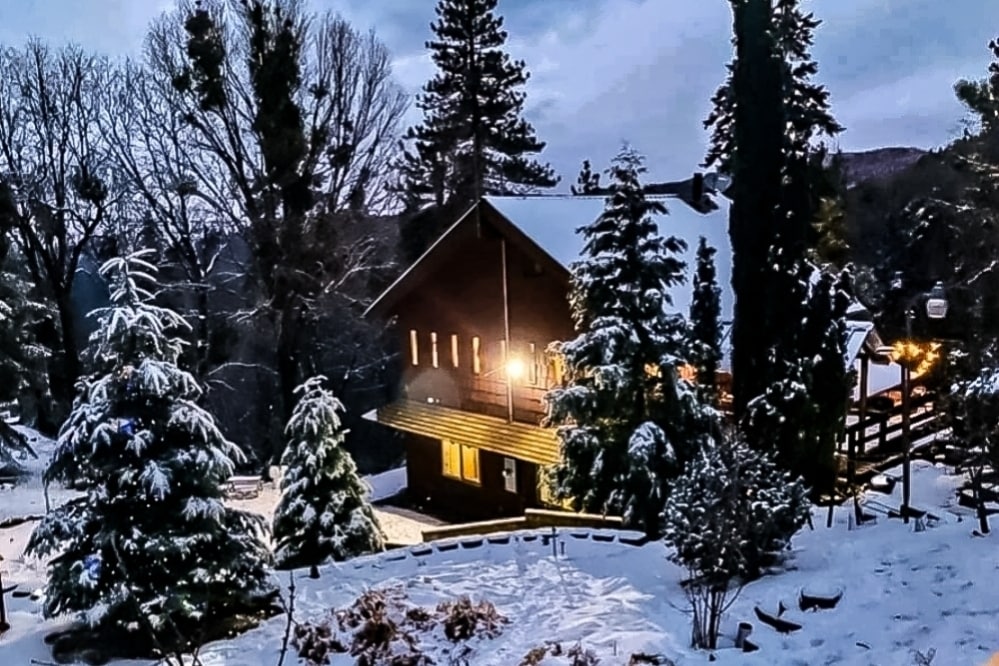 雪谷附近的现代 A 形小木屋 + 热水浴缸