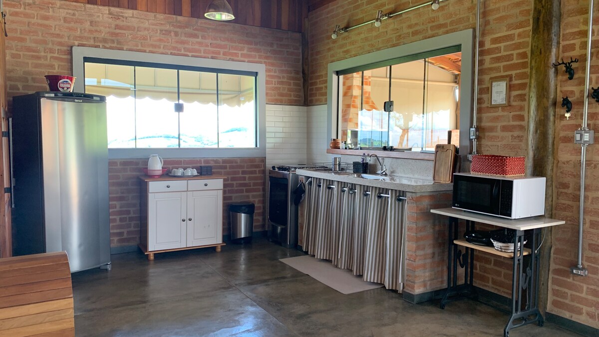 Venha se hospedar em um chalé de madeira a mais de 1200 m de altitude, localizado na encantadora cidade de Poços de Caldas, em meio as montanhas do sul de Minas Gerais. O chalé conta com banheira de hidromassagem, ar condicionado (frio e quente), cama queen em um aquário de vidro, deck com visão para as montanhas e um por do sol inesquecível, além de área externa com gramado de mil metros, lareira de jardim, um pergolado para piquenique romântico e fotos inesquecíveis, com seu love e seu pet !