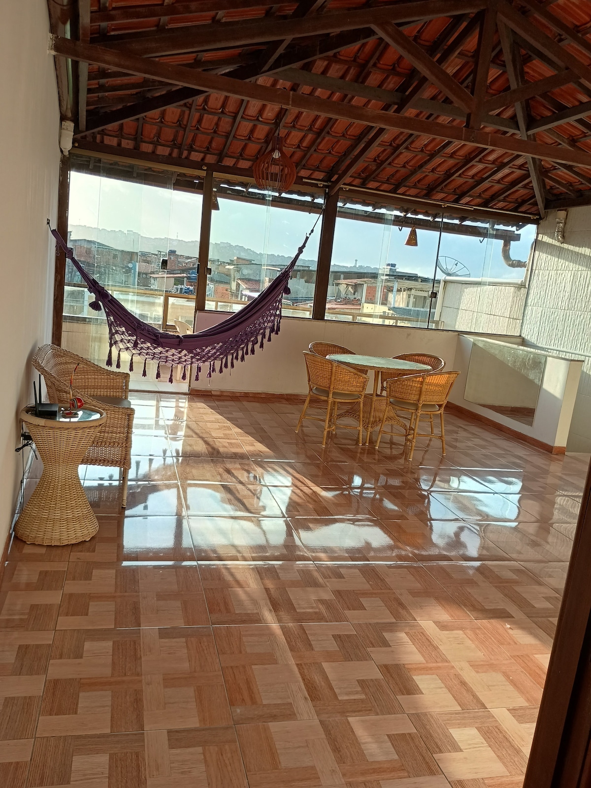 Vista e conforto para uma estadia memorável. Assista ao pôr do sol e nascer da lua numa cobertura particular, sem sair da cama, deitado na rede, na mesa de jantar, ou na rede da varanda. Vista mar total pra Bahia de Todos os Santos. Internet fibra e cozinha completa, totalmente climatizado. A poucos metros da Bahia marina, praia da gamboa e MAM. A minutos do pelourinho ou farol da barra. Portaria 24h, com garagem e piscina!