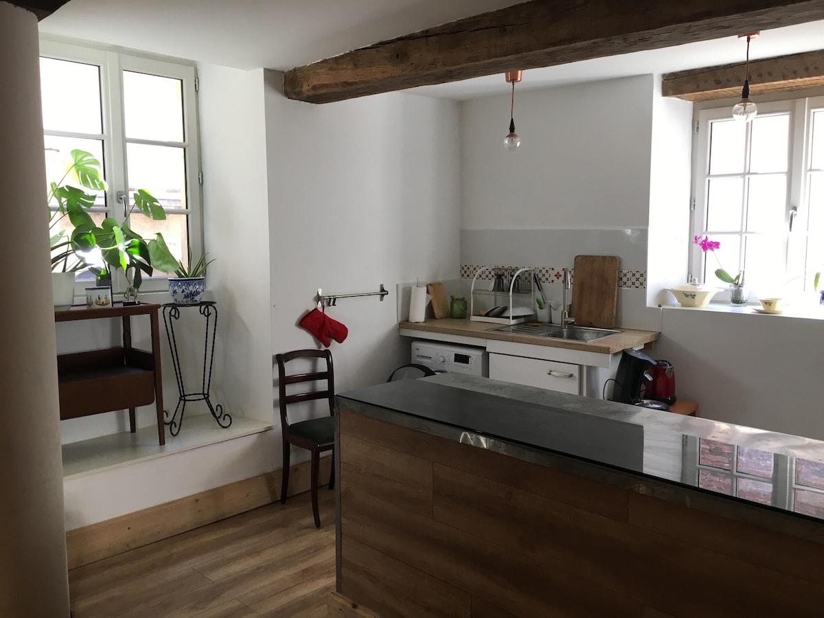 Ce loft climatisé est unique, il est situé en plein coeur du centre historique tout en étant au calme au fond d'une cour à proximité immédiate des Hospices. Il possède une vue incroyable sur la place Carnot et même sur le clocher des Hospices. Nous l'avons entièrement rénové et décoré avec des matériaux nobles de qualité. Plafond cathédrale impressionnant de 6m de hauteur, très lumineux. Parking gratuit à proximité, restaurants et commerces sur la place. Tout équipé et arrivée 24/24