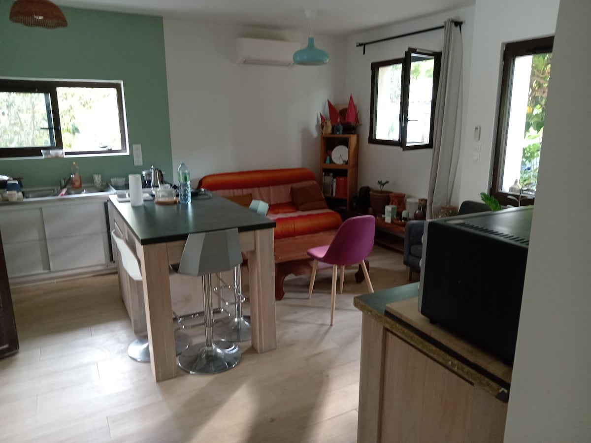 Logement climatisé totalement décoré avec goût pour votre confort ! Avec un parking gratuit sécurisé sur les hauteurs de Grabels proche du Pic Saint Loup, aux portes de Montpellier nord à 30 mn de Palavas les Flots Ce logement bénéficie d'un jardinet ombragé pour déjeuner ou prendre tranquillement un café à l'extérieur. Face à la garrigue pour vous promener et cueillir thym et romarin. face au Club de Tennis. Proche centre commercial, université de médecine, Staps, architecture et hôpitaux.