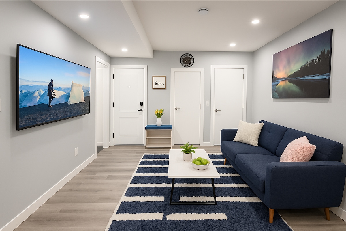 Nestled in Calgary's tranquil McKenzie Lake, our cozy 2-bedroom suite blends mid-century charm with modern convenience. With a private entrance, it's perfect for up to four guests, just a short drive from Calgary’s top spots. Need more space? The 3-bedroom unit above this suite sleeps eight and may be available for larger groups. Check it out here: airbnb.ca/h/mckenzie. Feel free to reach out if you or someone you know might be interested.