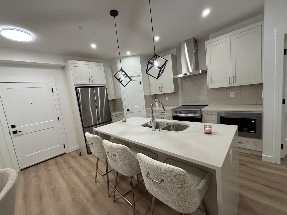 Welcome to your chic urban escape in Calgary’s sought-after Seton community. This thoughtfully designed 1-bedroom condo with a sofa bed is the perfect blend of comfort, style, and convenience—ideal for solo travellers, couples, or small groups. Located on a peaceful, tree-lined street with modern vibes, this newly built unit is filled with natural light, modern furniture, and elegant finishes. From the moment you walk in, you’ll feel the fresh energy of a space made for easy living.