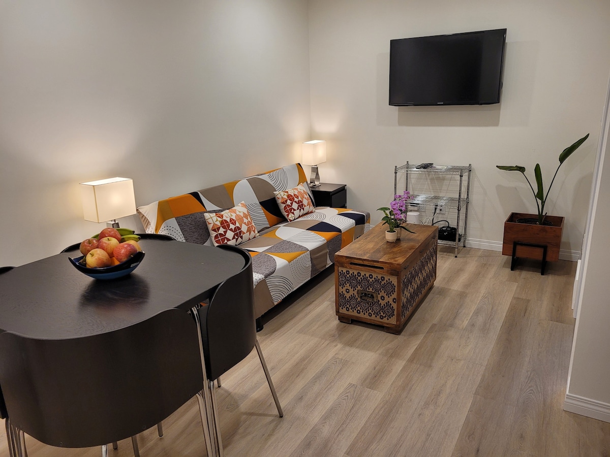Modern, cozy guest suite perfect for family, couples, solo travellers, vacation or business trips. Featuring comfortable queen-sized beds, a wet-bar, a modern bathroom, and a bright living space, this suite has everything you need for a relaxing stay. Conveniently located in the newly developed Wolf Willow community, overlooking Fish Creek Park and the prestigious Blue Devil Golf Club, it’s the ideal base to explore the Calgary area and a peaceful atmosphere to unwind after your adventure!