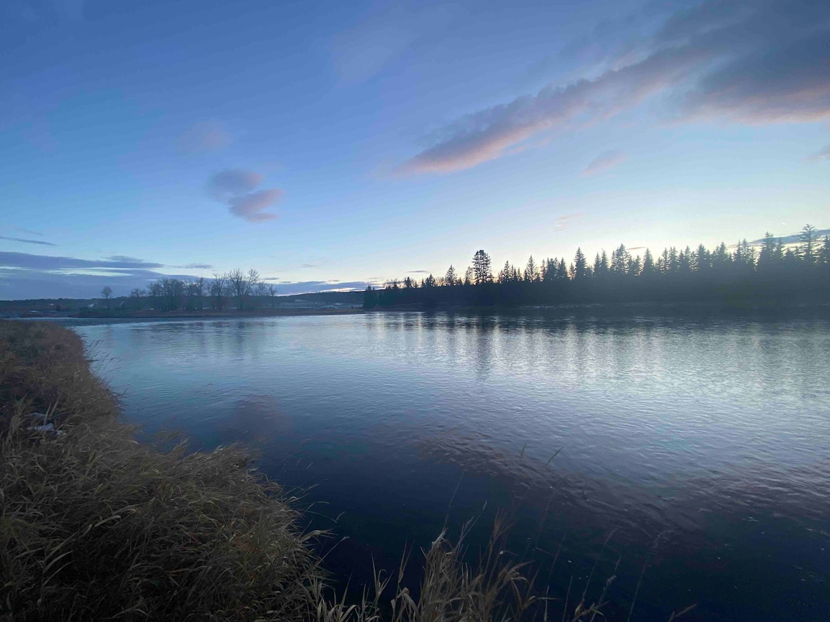 Cottage is situated on 5 beautiful acres, along the Sheep river. Private & quiet, 5 minutes from Turner Valley. Play at the river, lounge on the deck, relax in the hot tub! Fish, hike, climb cliffs, swimming holes, explore. In winter, cross-country ski, snow shoe (provided), snow mobile. The cottage sleeps 6 inside (1 queen bed & 2 sofa beds). Also 3 sleeping pods ($150 per stay add-on) with queen beds. RV's & tents welcome. 30 minutes from Calgary, perfect for impromptu get-aways!