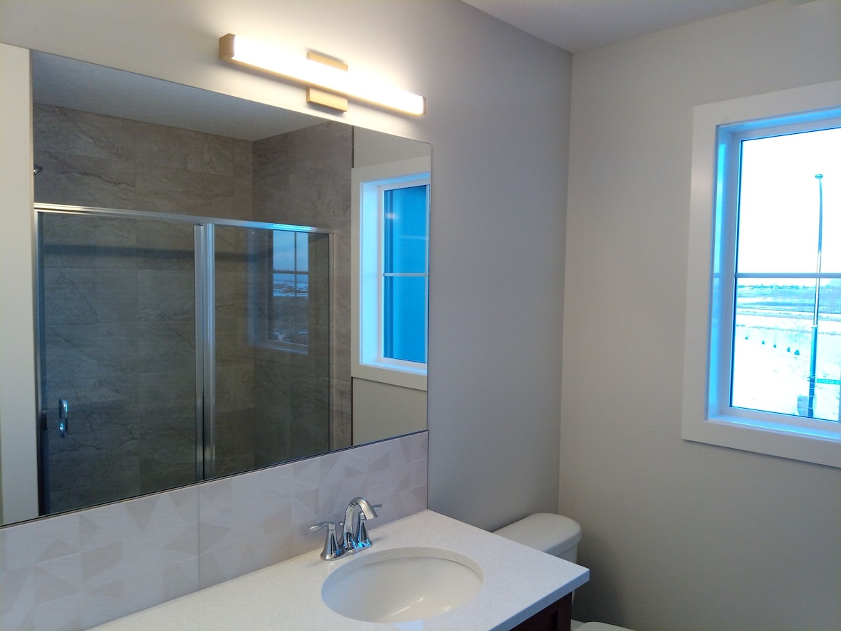 Relax at this brand-new, peaceful, stylish, airy, 2-bedroom, walk-out lower level suite with 1 king and 1 queen beds in Cranston. Separate entrance, 1 free parking on driveway with street parking available, cozy living room with breathtaking lakeview, all-day-long sunshine patio, watching ducks/birds over the lake from beautiful spacious flowering garden, off leash dog run in 9000+ sf private yard, walkway to the Bow River, and much more...will make your stay comfortable and enjoyable! Welcome!