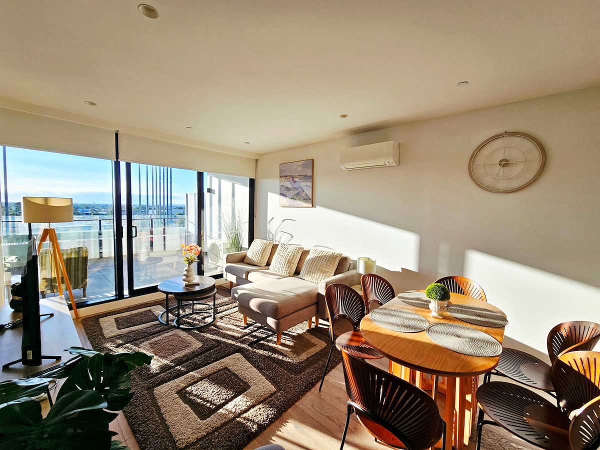 Treat yourself to our 2 bed 2 bath penthouse with glorious city views from the stunning balcony Fully equipped kitchen with stove, oven, microwave, fridge/freezer, utensils, coffee, tea, plus other essentials Sleeps 6 guests, with 2 queen beds and a air mattress upon request.. - Large 55" Samsung Smart TV & wifi - Highpoint Shopping Centre across the road - Secure undercover parking - Washer, dryer & dishwasher