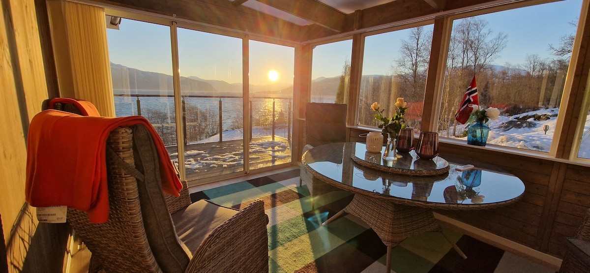 This comfortable cabin are located in the beautiful village Kandal in Gloppen, Sogn og Fjordane. If you are looking for something special, this will be the perfect place. Here you are surrounded by high mountains, a lake, rivers and waterfalls. The area are good for trout fishing, and it's possible for the guests to rent a boat during the summer. If you like hiking, there are many great routs in the area. If you just are looking for silence and beautiful scenery, just sit down and enjoy!