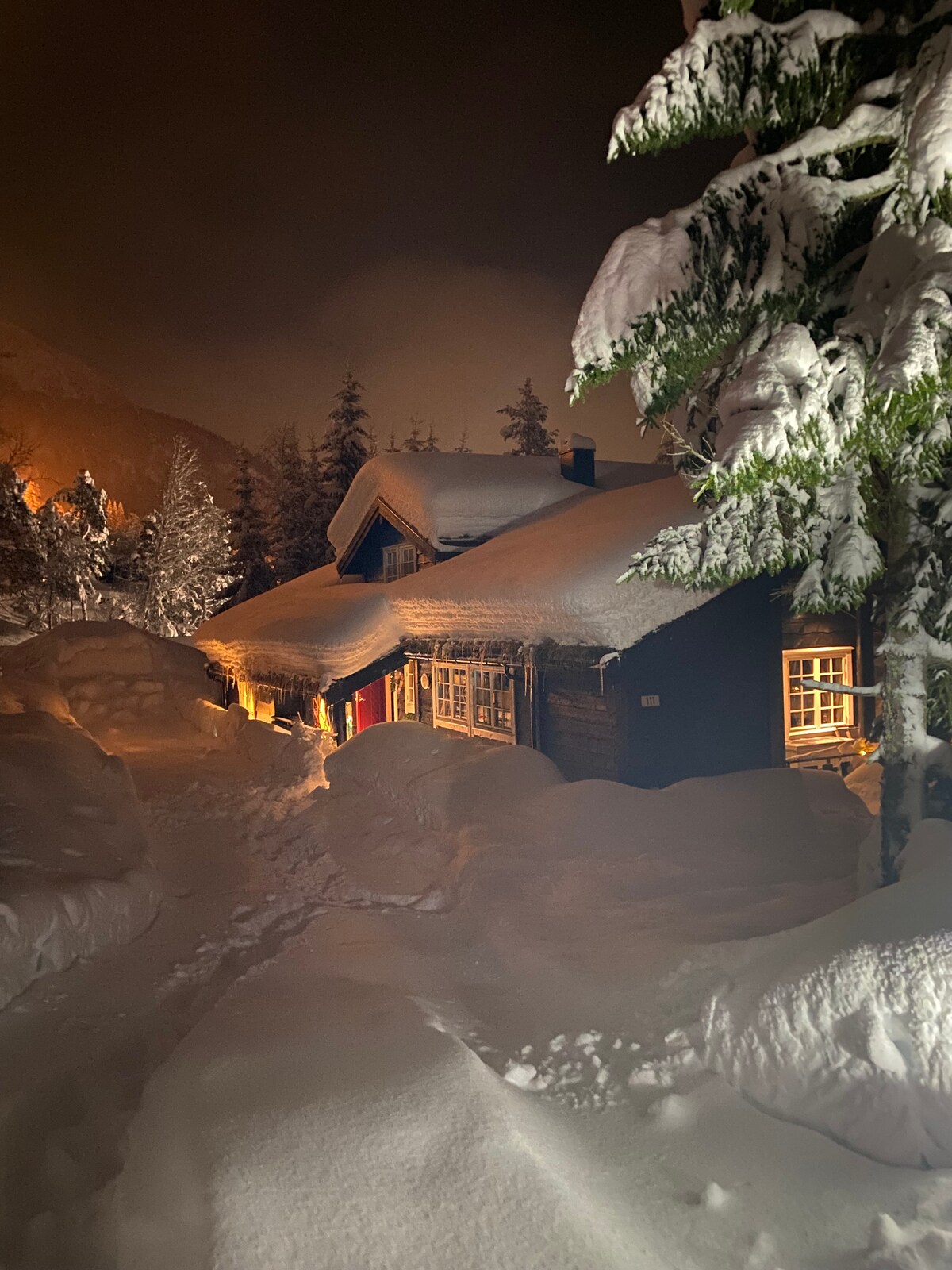 Myrkdalen Lodge, peis og badstue familiehytte