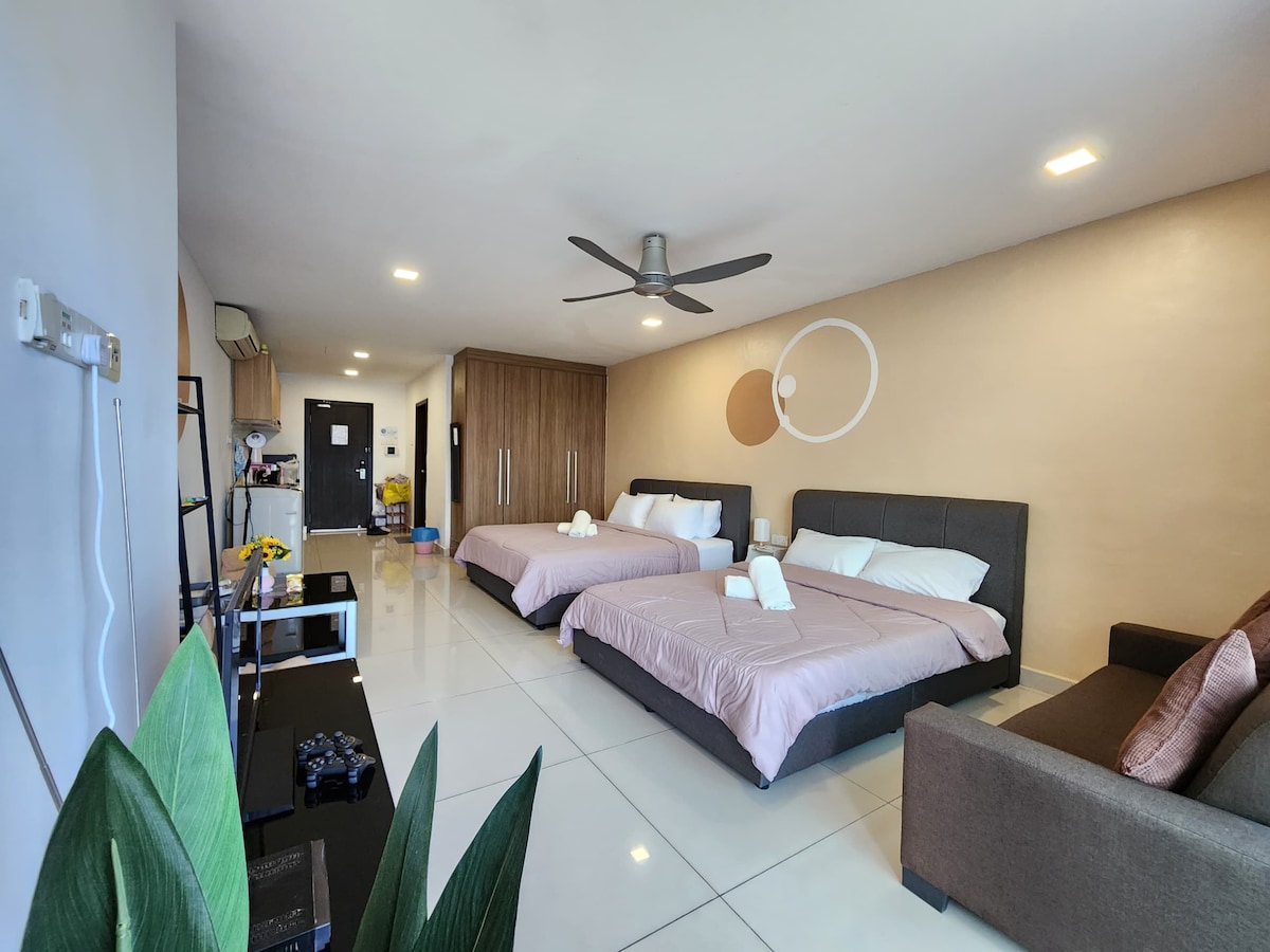 Molek is Centre Middle of Johor Bahru, whever u would like to go for CIQ , Midvelly , Tebrau Jusco , ETS this location is very nearby and many high way can easy acess. The Condo incoming with many outstanding of Facilities to enjoy like : Badminton , Snooker, Basketball , Swimming,Sauna,Mahjong,Meeting and many more as the pictures~ Our Studio design is Cozy and custom made suitable for Enjoy our night at Johor Bahru~ -1 Queen size bed -1 Sofa bed -1 Foldable Mattress -Wifi -Coway -1 Carpark