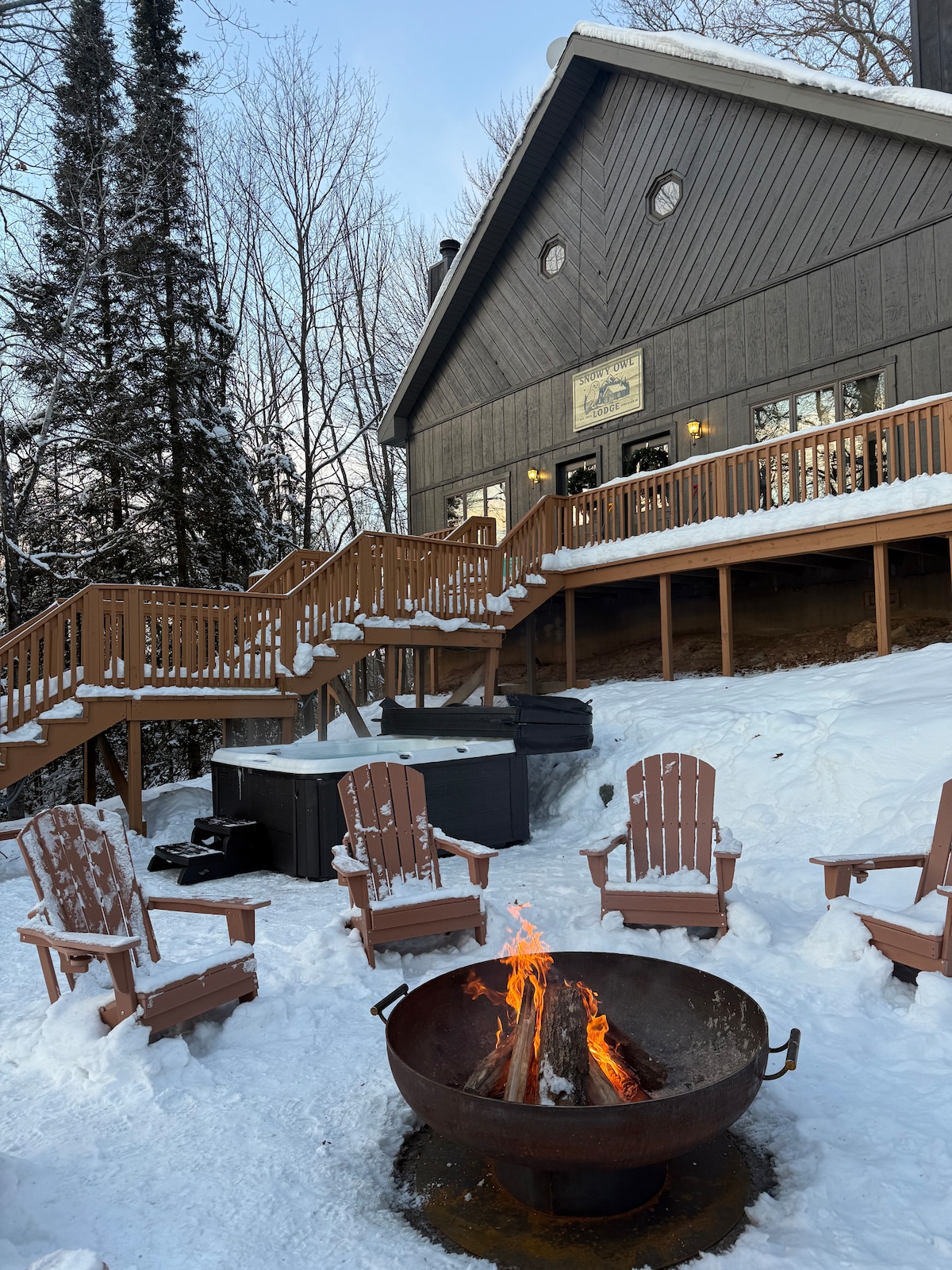 *low tox/frag free- Bring the whole family to Snowy Owl Lodge—Right Side! Sleeps 12 with 4 bedrooms, 2 lofts, 4 full beds, 2 twin beds, pull out couch, & 2 full baths. Enjoy hot tub, deck, grill, fire pit, sauna & plenty of space to relax. Just steps from Ski Brule, 10 mins to town, on snowmobile trail and near 5 lakes including Blue-Ribbon trout streams. Perfect for all seasons—ski, snowboard, snow tube, snowmobile, fish, hike, hunt, bike, waterfalls, autumn colors & more in the ❤️ of the U.P.