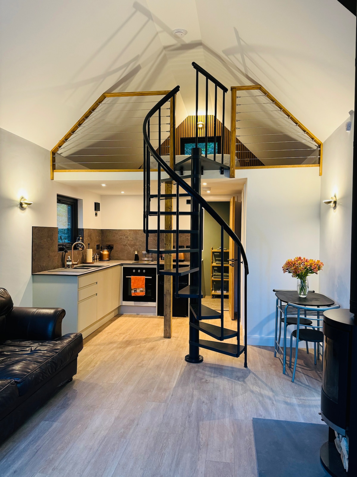 Romantic luxury loft for two on a 40-acre private estate in the Wye Valley National Landscape. Perfect for honeymooners, stargazers, proposals, anniversaries, or milestone moments. Enjoy panoramic Mork Valley views through the feature arched window, vaulted oak beams, and a cozy fire pit (logs & marshmallows incl.). Includes a generous welcome hamper and exclusive access to our dark skies, meadows, stream, and woodland. A peaceful, magical retreat with high-end, curated experiences available.