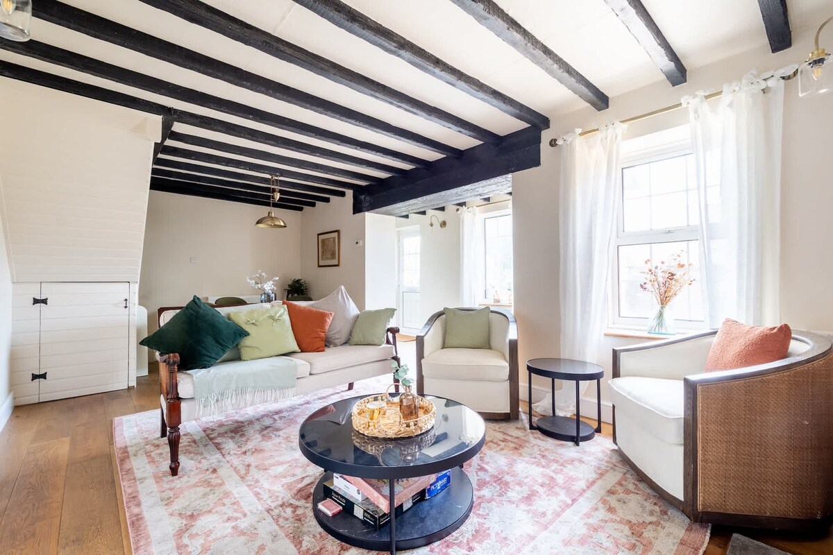 Boasting old floorboards, original beams and quirky features, this historical semi-detached cottage allows guests to switch off from the outside world. The location benefits from easy access to countryside walks but it's also just a few minutes walk from charming shops, cafés and country pubs. Our first guests used the space as an escape to write their scripts and novels and we encourage all guests to relish in the romance of village living and explore their creativity.